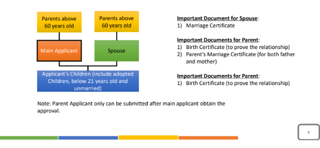 Foreigners who fulfill certain criteria may apply, and a successful applicant is allowed to bring a spouse, an unmarried child under the age of 21, and parents who are over 60 years old.